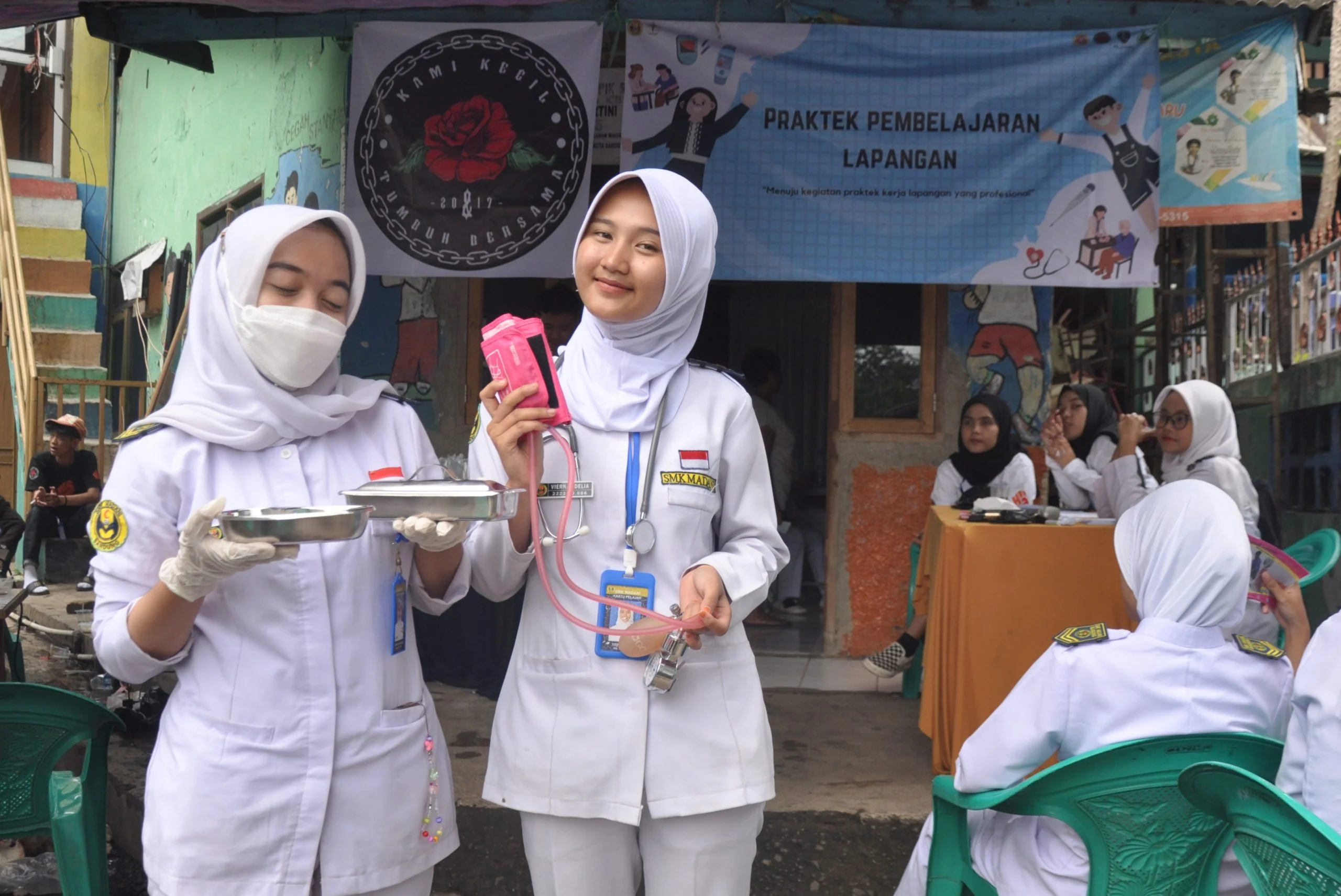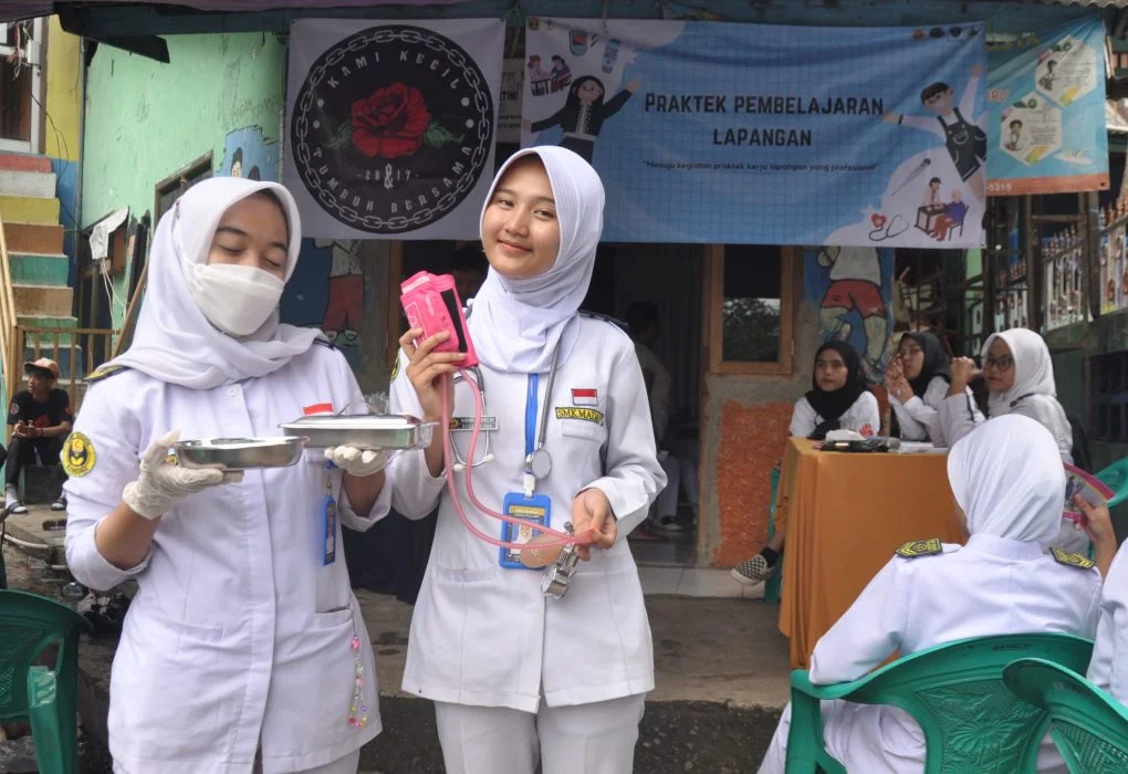 (Ketua Pelaksana Layanan Kesehatan Gratis dari SMK Madani Kota Bandung, Vierna Adelia (kedua Kanan) beserta Ummu Hani Sabila (kiri) memperlihatkan alat kesehatan di Aula Serbaguna RW 05, Kelurahan Warung Muncang, Kecamatan Bandung Kulon, Kota Bandung, Sabtu (17/2/2024)) Tak heran kegiatan pembelajaran praktik lebih disukai ketimbang pemaparan teori di ruang kelas. Pasalnya para siswa bisa langsung…