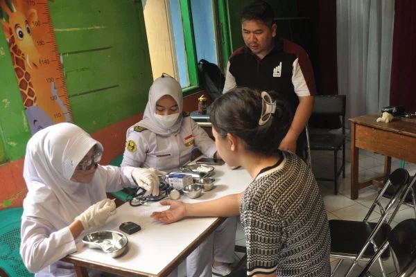 (Sejumlah pelajar SMK Madani Kota Bandung didampingi Wali kelasnya, Luqmanul Hakim memberikan layahan kesehatan gratis bagi masyarakat Lanjut Usia (lansia) di ruang aula serba guna RW 5, Kelurahan Warung Muncang, Kecamatan Bandung Kulon, Kota Bandung, Sabtu siang (17/2/2024)/ H Muthahari) Untuk menjembatani keilmuan teoritis dan terapan, kegiatan PPL menjadi keharusan bagi kalangan siswa SMA/SMK dan…